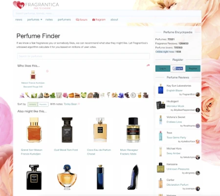 Fragrantica is an online encyclopedia of perfumes, a perfume magazine, and a community of perfume lovers. Fragrantica informs its readers about new perfume launches, famous fragrances, and less-known but wonderful scents. Together we travel in time and space, where perfumes are the shining stars we use to navigate. We learn about their history, we discover far-away places, and respectfully explore the life we see around us, always taking time to be amazed by Nature. Fragrantica is a place to learn from each other and relax in the company of your soul mates.