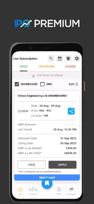 IPO Premium provides information, alerts, and live subscription data for the IPOs (Mainline and SME) with Notifications in India.