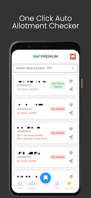 IPO Premium keep you updated on the status of you Bid and shows the current status along with the exchange messages on Success and Failed Bids.