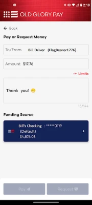Old Glory Pay is Old Glory Bank's peer-to-peer (P2P) platform that’s America’s first digital cancel-proof payment system. With Old Glory Pay, existing Old Glory Bank customers can quickly, securely, and privately exchange funds with other Old Glory Pay users at no cost. The app is lightning fast, free, and available to all our customers with a spending account.