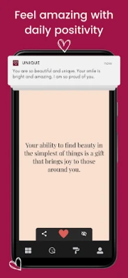 Discover the magic of daily self-love with Unique – Self-Love & Daily Compliments. Feel more confident, empowered, and beautiful every day with personalized compliments, positive affirmations, inspiring quotes, and uplifting messages delivered straight to your device.